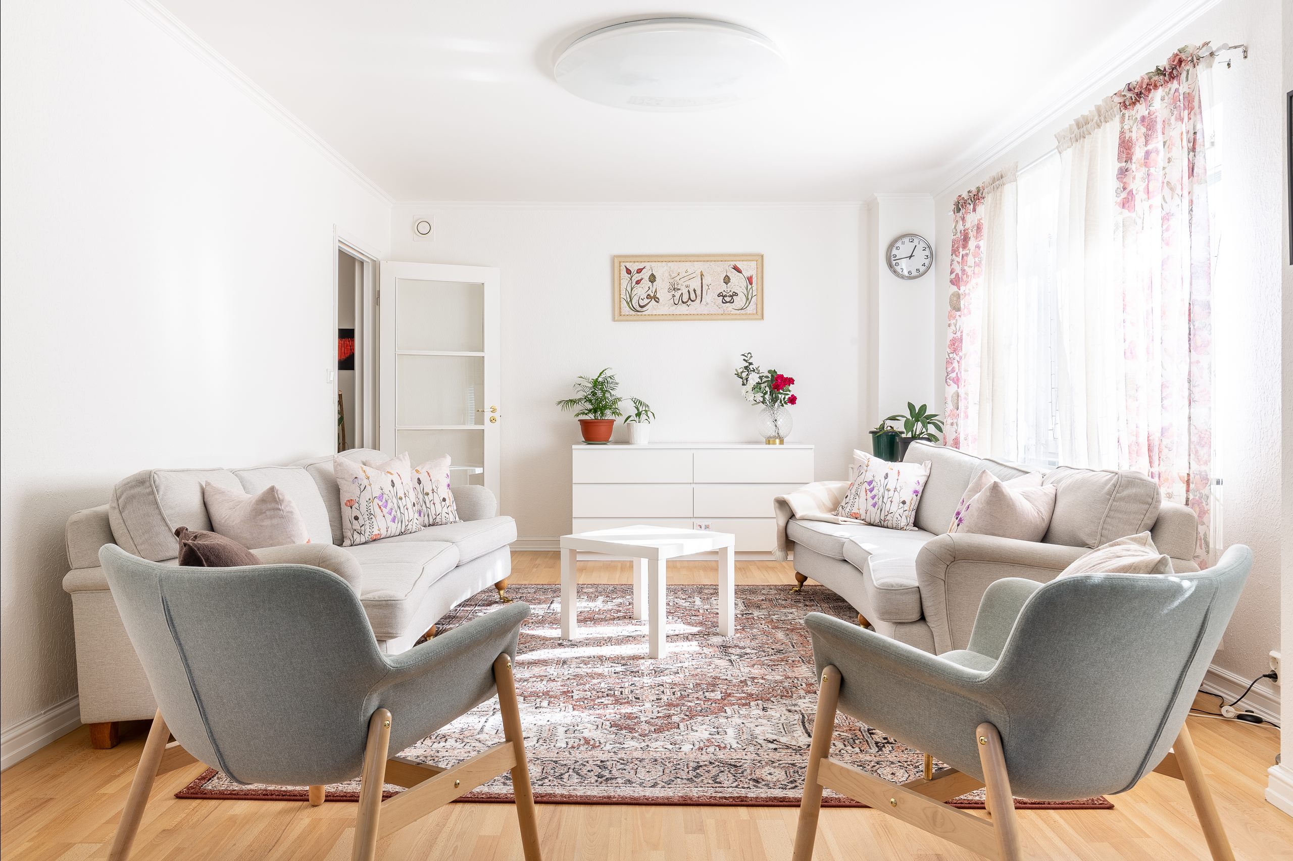 Vidare har vi ett luftigt, ljust och harmoniskt vardagsrum med utgång till en inglasad balkong i söderläge. Solens strålar letar sig in stora delar av dagen - perfekt att avnjuta inför de kommande varma månaderna. Från vardagsrummet nås det andra sovrummet, som i dagsläget nyttjas som social yta med fint valv. Här kan man utan större svårigheter göra om till ett andra sovrum eller nyttja som matsal, hemmakontor etc. Möjligheterna är många.
