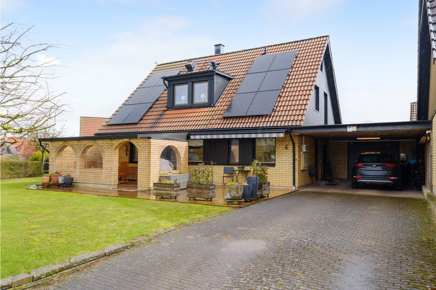 Den lättskötta tomten ger utrymme för både lek och avkoppling. Här finns plats för utemöbler, grill och kanske en liten odling för den som önskar. Området är lugnt och tryggt, med närhet till skolor, service, kommunikationer och grönområden. Huset erbjuder dessutom låga driftkostnader tack vare en stor solcellsanläggning som effektivt producerar egen el. Den kompletteras av batterilagring i form av tre batterier, vilket möjliggör smart energianvändning och ytterligare kostnadsbesparingar över tid. Detta har även kompletterats med laddare för elbil för extra komfort.
