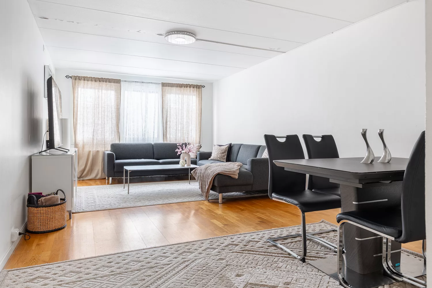 Här bor ni i en välplanerad lägenhet med vardagsrum som erbjuder en stor social yta med både plats för soffgrupp och matplats samt utgång till en inglasad balkong. Det komplett utrustade köket med kyl/frys, diskmaskin, spis, ugn och fläkt är perfekt för den matlagningsintresserade. Köket har också plats för en större matgrupp. Här har ni även ett modern och rymligt badrum samt en gäst WC, vilket gör detta till ett praktiskt och bekvämt boende. Bostaden erbjuder generöst med förvaring med en större klädkammare som nås från hallen. Vid behov av ytterligare förvaring finns det plats för garderober i båda sovrummen. Det finns även ett förråd som tillhör bostaden och ligger i nära anslutning.