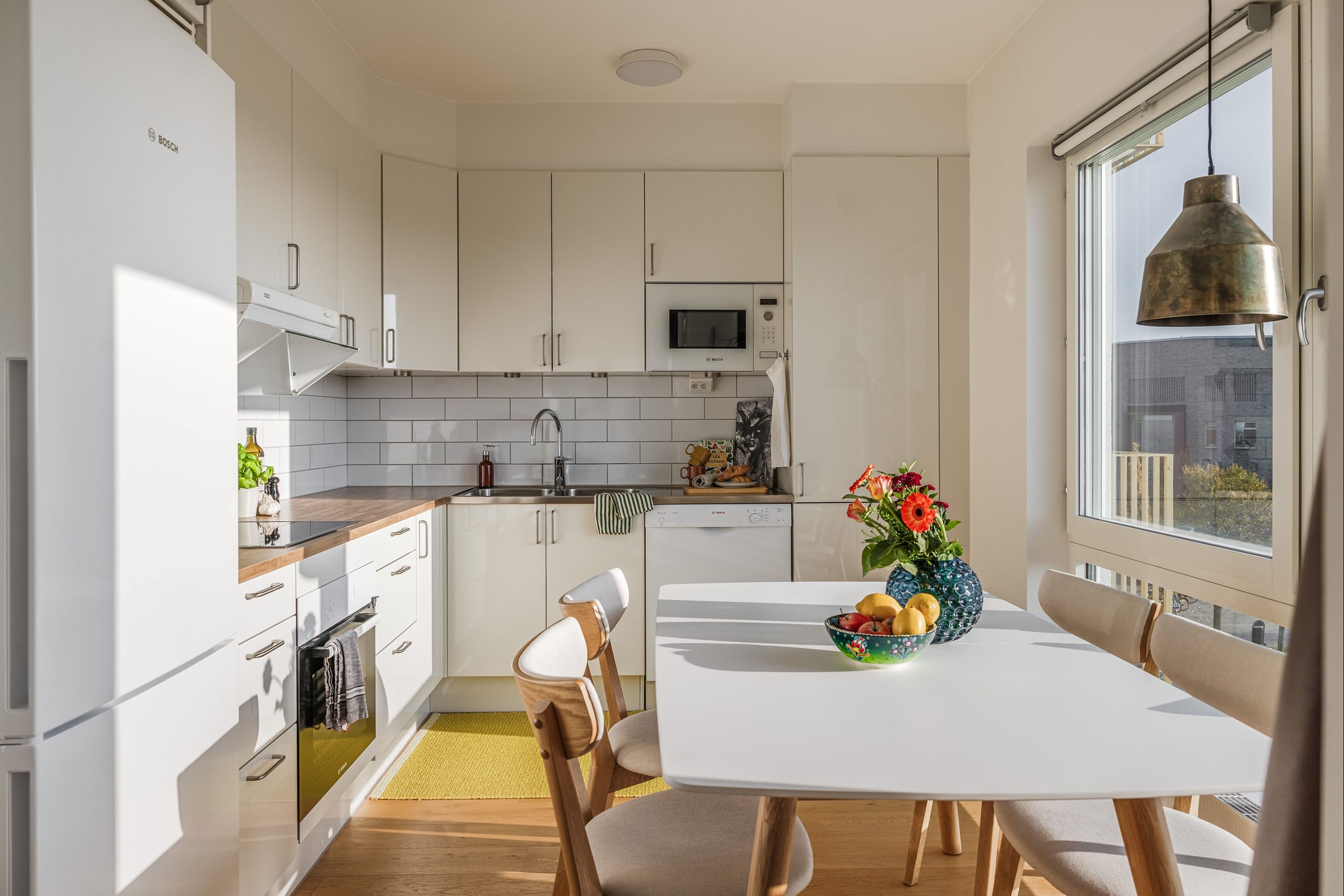 En praktisk hall med förvaring och lättskött klinkergolv, stort badrum med golvvärme och egna tvättmöjligheter i jordiga kulörer. Öppet & luftigt vardagsrum som skapar en varm atmosfär tillsammans med de stora fönsterpartierna, den fria sikten och soliga läget - ett härligt rum för avkoppling och social samvaro. Köket är utrustat med snygga ytor för matlagning och även här stora fina fönsterpartier som skapar generöst ljusinsläpp. Denna tvårummare ligger på en av de mest eftertraktade adresserna i området tack vare den välskötta föreningen och sitt läge ut mot parken.