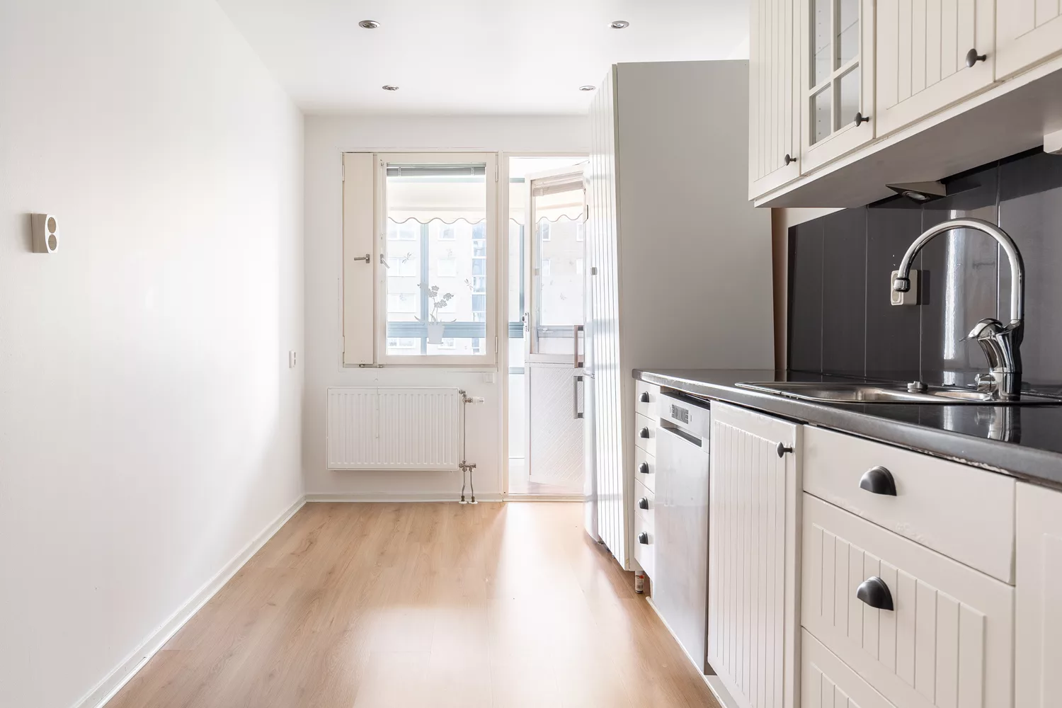 Här finns en rymlig hall med lättskött klinkergolv och spotlights i tak, två sovrum i bra storlek med fina parkettgolv, ett luftigt vardagsrum med stora fönsterpartier ut mot Cronhielmsparken och ett snyggt, välutrustat kök. Här har ni även badrum och gäst-WC samt en stor inglasad balkong mot föreningens innergård med morgonsol. Ytskikten är välskötta och renoverade i omgångar, köket är snyggt renoverat med spotlights i tak och med samtlig maskinell utrustning på plats.