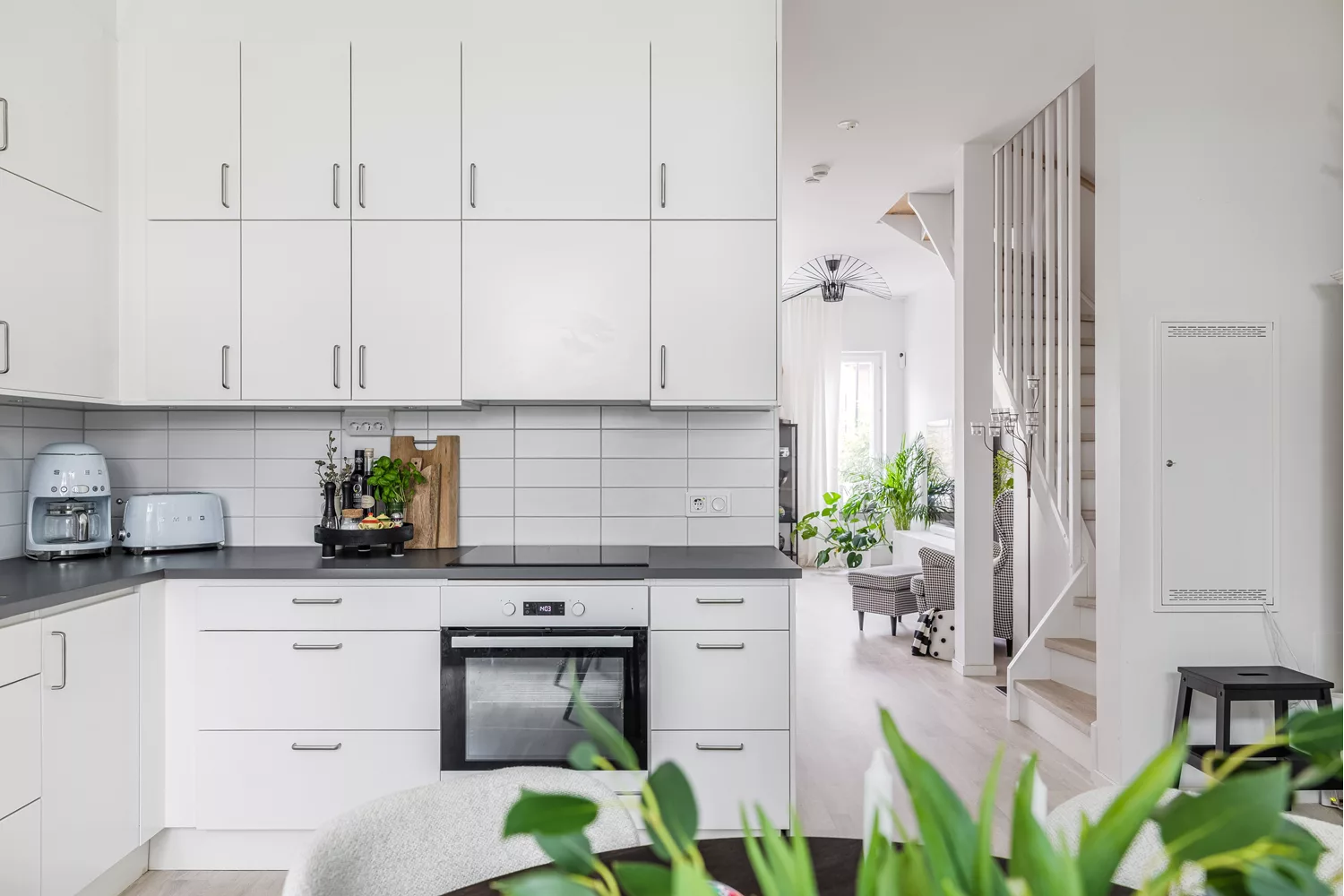 Här har ni egen ingång från den härliga lilla gatan Sagas gränd, en idyll för er som söker boende med närhet till goda förbindelser och trevligt grannskap. På Sagas gränd 3D finner ni ett välplanerat townhouse med vackert slipade, vitvaxade parkettgolv i kombination med en otrolig takhöjd. Den luftiga känslan förstärks av de ljusa kulörerna och stora fönsterpartierna som släpper in stora mängder ljus hela dagen. Köket är från högkvalitativa Vedum, här har man effektivt utnyttjat takhöjden som ger köket mycket förvaring.