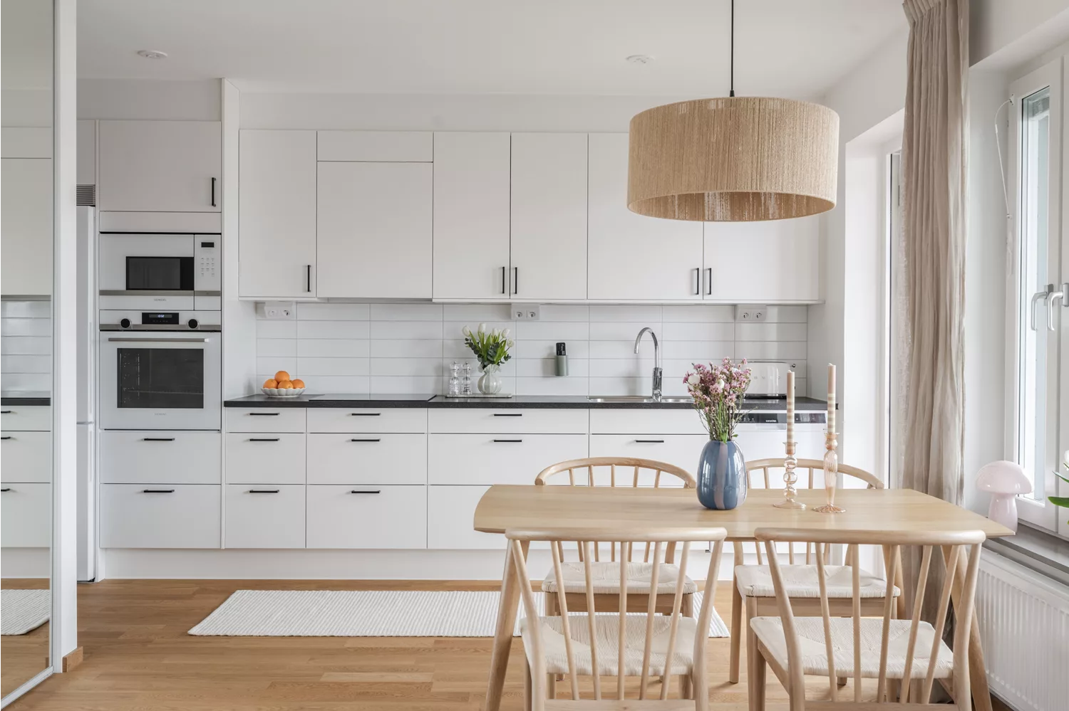 Redan när du kliver in möts du av en stilren och harmonisk bostad med generöst ljusinsläpp och en härlig rymd. Den smart avskilda sovalkoven skapar en naturlig och privat sovdel, medan allrummet och köket i samspel erbjuder plats för både soffa och matplats – perfekt för såväl avkoppling som sociala tillställningar.
